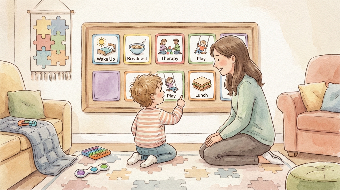 Complete guide to visual schedules for children with autism. Learn ABA-backed strategies, practical tips, and how personalized charts increase engagement.
