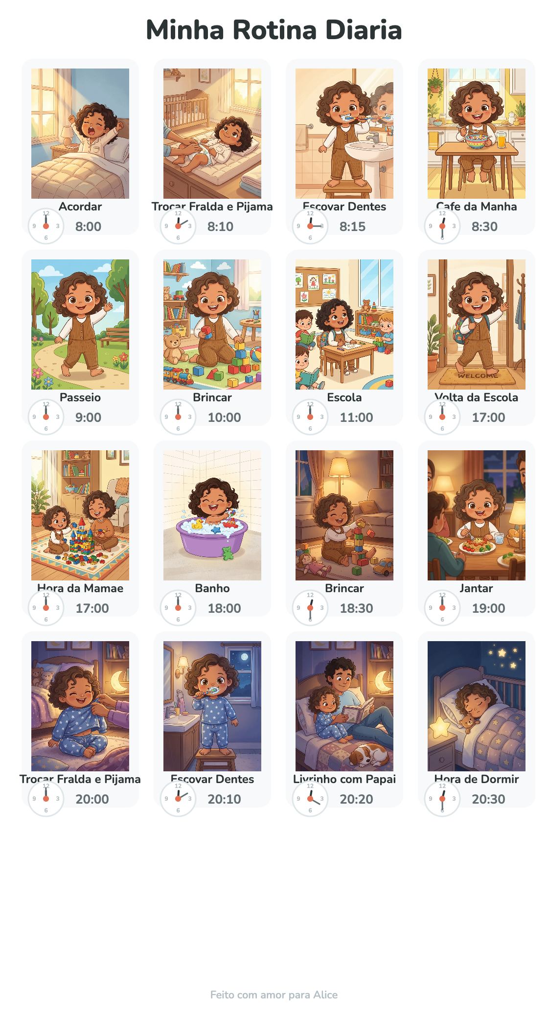 Ideal para crianças de 1 a 6 anos, fase onde a rotina visual é mais efetiva.